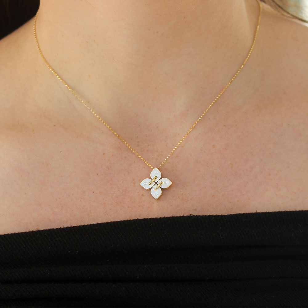 Roberto Coin Venetian Princess White Enamel Filo Necklace with Diamond