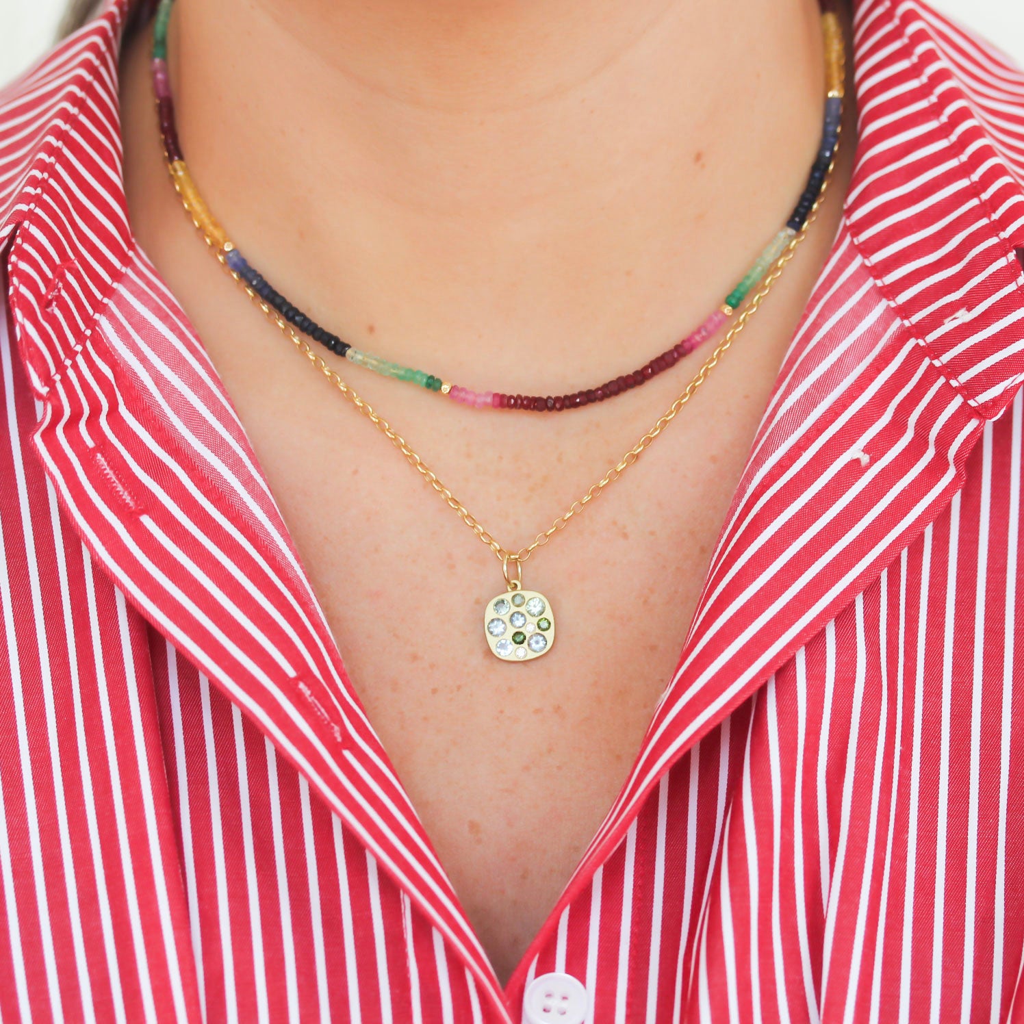 Lauren K Ruby, Sapphire, and Emerald Beaded Necklace