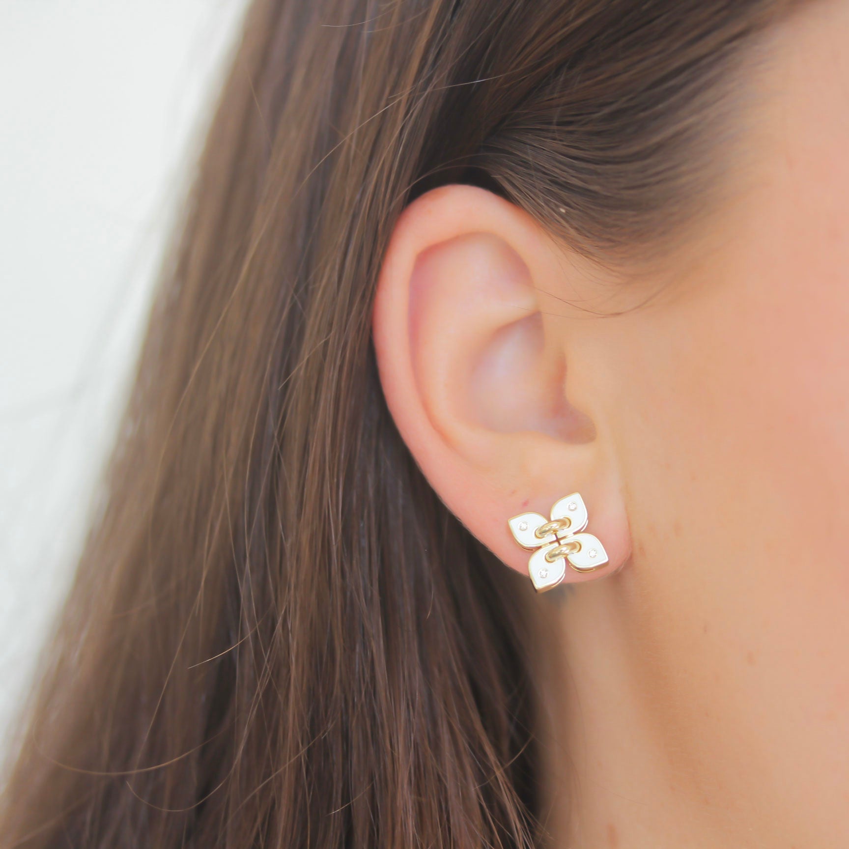 Roberto Coin Venetian Princess Diamond and White Enamel Earrings